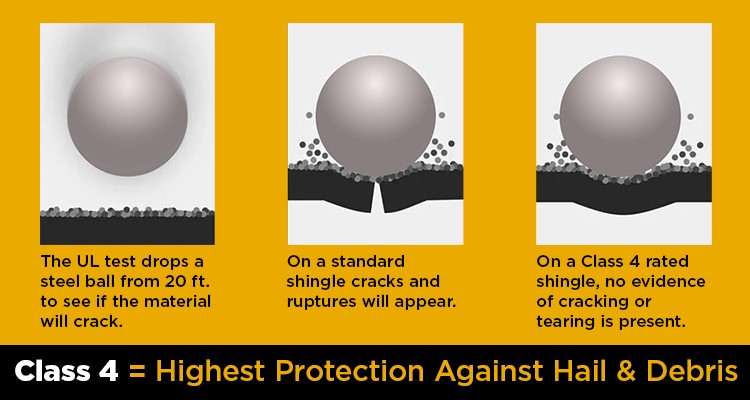 Just like cars have official safety ratings, shingles are rated on how well they resist impact, wind, and fire. Shingles are rated between Class 1 to Class 4, and Class 4 is the highest.